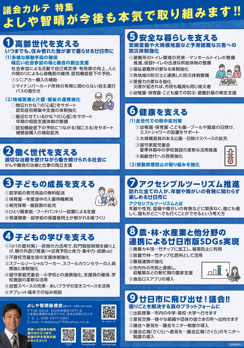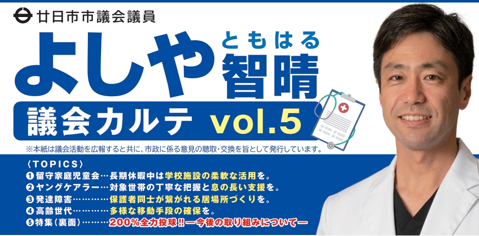 議会カルテ Vol.5 TOPICS① 留守家庭児童会:長期休暇中は学校施設の柔軟な活用を。② ヤングケアラー:対象世帯の丁寧な把握と息の長い支援を。③ 発達障害:保護者同士が繋がれる居場所づくりを。④ 高齢世代:多様な移動手段の確保を。 Tweet Share 議会カルテVol.4前の記事 議会カルテ Vol.6次の記事